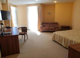 - Удобства в номерахСейф; Отопление; Кондиционер; Фен; Телевизор; Холодильник; Телефон; Душ